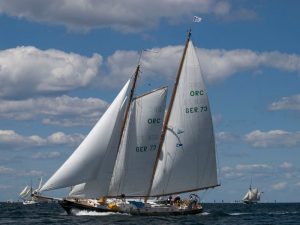 It will soon be time for the start of the 10th Charles Stanley Direct Cowes Classics Week which, once again, is a magnet for some beautiful newcomers amongst the larger classic yachts including Dietrich Kruegel’s schooner Mistral which is sailing from Germany to take part.  A Herreshoff design built in Massachusetts in 1938, Mistral has a distinguished history, patrolling the US coast for U-Boats during World War II and, as a US Navy training ship, crossing the Atlantic under the command of the Navy’s first female captain.