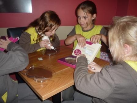 As part of thier celebrations the Brownies and leaders are attending three special events to mark the ocassion. In October they visited Thorntons to learn how to decorate chocolates and of course chocolate tastes came into play.