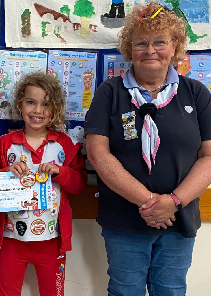Meanwhile one Rainbow has gained her Gold Award. This is Holly the 1st Rainbow to achieve her Gold Award in the Brighstone & Shorwell Unit. Leader Anne (pictured with Holly) said “ All so proud of her and so well deserved. She hardly misses any of our unit meetings.“