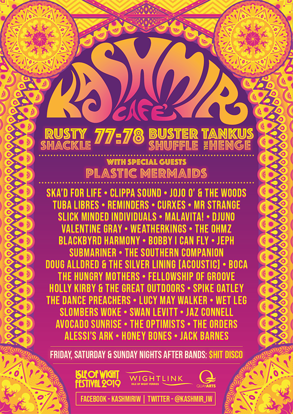 Kashmir Café is returning to the IW Festival for another year. As well as music to suit all tastes the Kashmir Café offers IW produced beers and other locally produced drinks. With its stage area, bars and garden by the river it is just the venue for a June day.