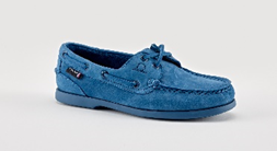 OCEANIA, for ladies, comes in a mid-blue suede with matching latex rubber sole. Soft and flexible this is the most comfortable shoe. Although it could be described as a deck-shoe its colour and style is very wearable for most occasions and the mid-blue tones with most colours if that is a concern. The one through lace really works to tighten, forming a snug fit around the foot if that is your style and once laced the front bow adds a finishing touch. It is hand stitched at the back of the ankle and can be worn as ‘smart’ or casual and comes in sizes 4-7. My only slightly negative comment would be that the lace is too long- Chatham shoe makers please note- you could save some leather here!