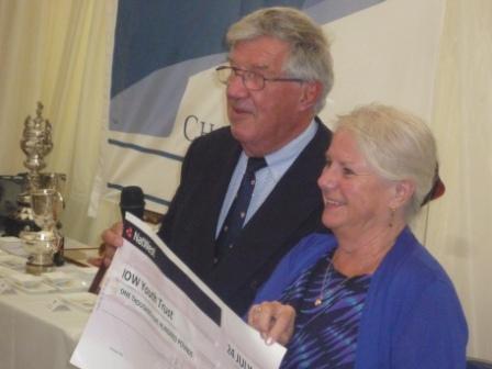 All through the week competitors were encouraged to donate to the Island’s Youth Trust or to purchase raffle tickets. Prizes in the raffle included tickets for Bestival or meals at the Royal Hotel, Ventnor. Eileen Monks OBE from the Youth Trust spoke on the Trust’s work at the evening reception on the opening day telling the guests that The Youth Trust is a charitable independent and professional organisation offering counselling, advice, information and support services to young people aged 25 and under on the Isle of Wight and, in some cases their parents or carers. The Youth Trust has been working on the Isle of Wight for over 30 years and has made a positive input to the wellbeing of people locally. Eileen was also present to receive a cheque for £1,500, generously donated by the competitors, at the final prize giving. Eileen thanked all those who had given money to the trust and wished everyone good sailing in the future.