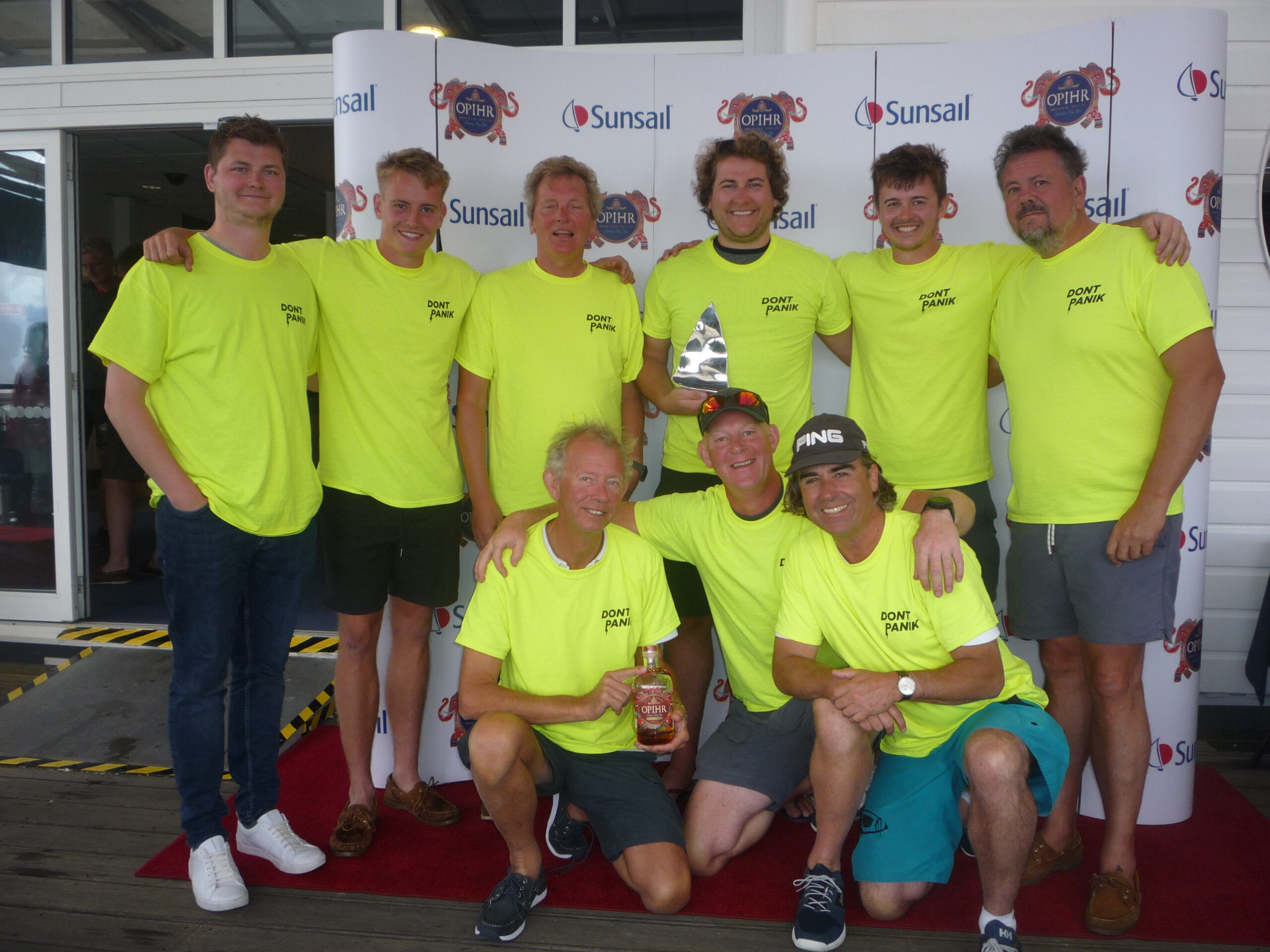One of the classes racing at Cowes was the ever- popular Sunsail yachts boasting their new fleet of F41s. These new yachts are larger than those previously used in the Sunsail Fleet and proved popular with crews. There was daily prizegiving in this class with a Trophy and Opihr Gin for the winners, who, on Monday, were the crew of ‘Don’t PaniK’.