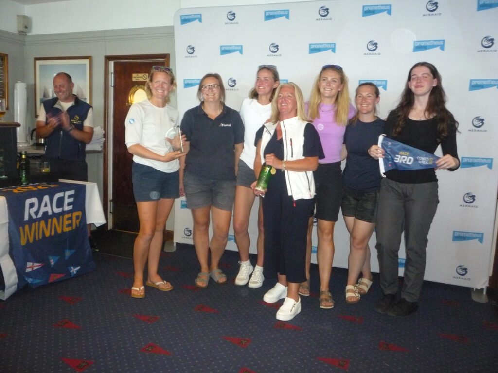 Tuesday was Women’s Day which saw an all woman crew on the podium at the Prometheus prizegiving. Xavier Baker from Mermaid, following taking part in the racing. presented the prizes of Mermaid Zest.