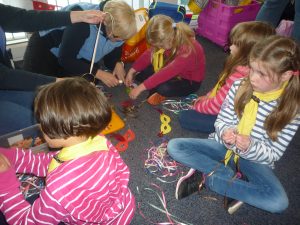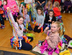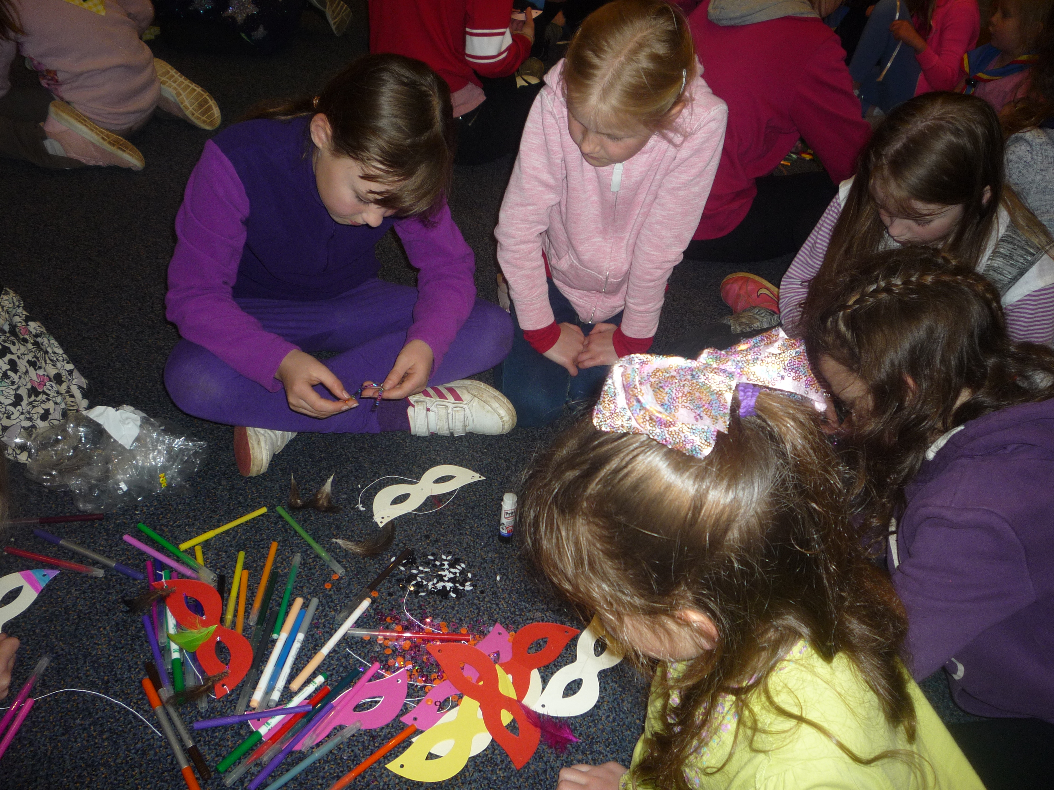During the afternoon all the girls practiced dancing with Starlight Boutique and Ann Abe from Dance Vibes. In a session led by Dan they played their home-made instruments which they had made in unit meetings, dressed in ribbon skirts and carnival masks which they had made and decorated bracelets with colourful ribbons.