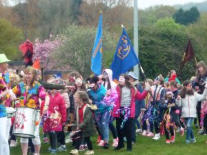 All was now set for the grand procession and what a colourful sight it made with the bright costumes together with unit flags and banners.