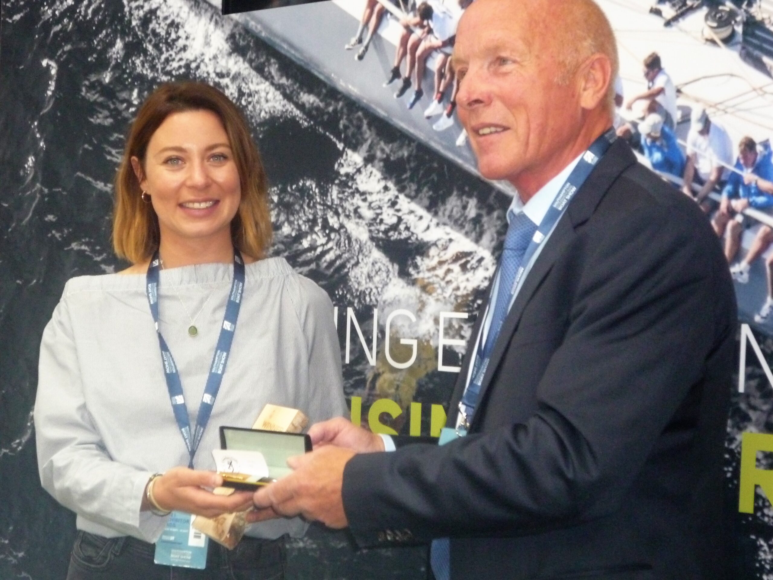 Renowned sailor Mike Golding OBE was on the B&G stand to present the Yachting Monthly Environmental Writer Award to Sophie Dingwell. Mermaid Gin and tonic drinks were provided to toast the deserving recipient who had written environmental features for magazines. Mike Golding spoke of a time when he was sailing, and his boat collided with what he thought to be a small island. This in fact was an island of plastic rubbish that was so dense it stopped the yacht completely. On investigation the yacht crew found plastic bottles, plastic ropes and netting and other plastic items forming a dense man-made island. Following this Mike has become very involved with environmental projects.