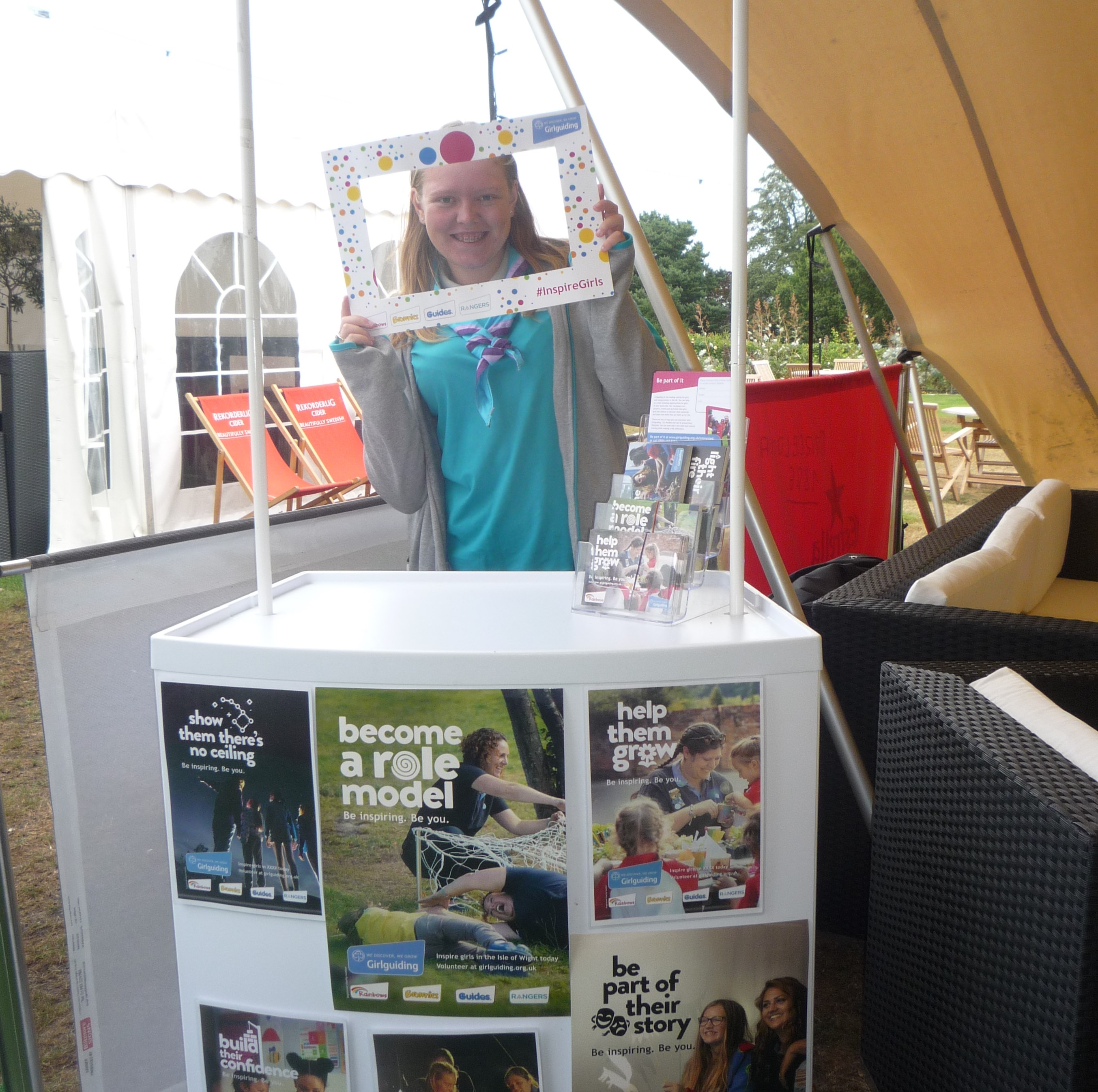 Despite the stormy weather and even the cancellation of the yacht races in the Cowes Week Regatta members of Girlguiding IW took the pop-up to Northwood Park on Sunday 11th August. Ranger Coral Hatcher (pictured) joined the team and was ready with her Instagram frame.