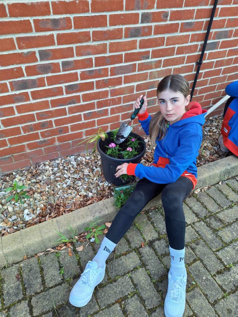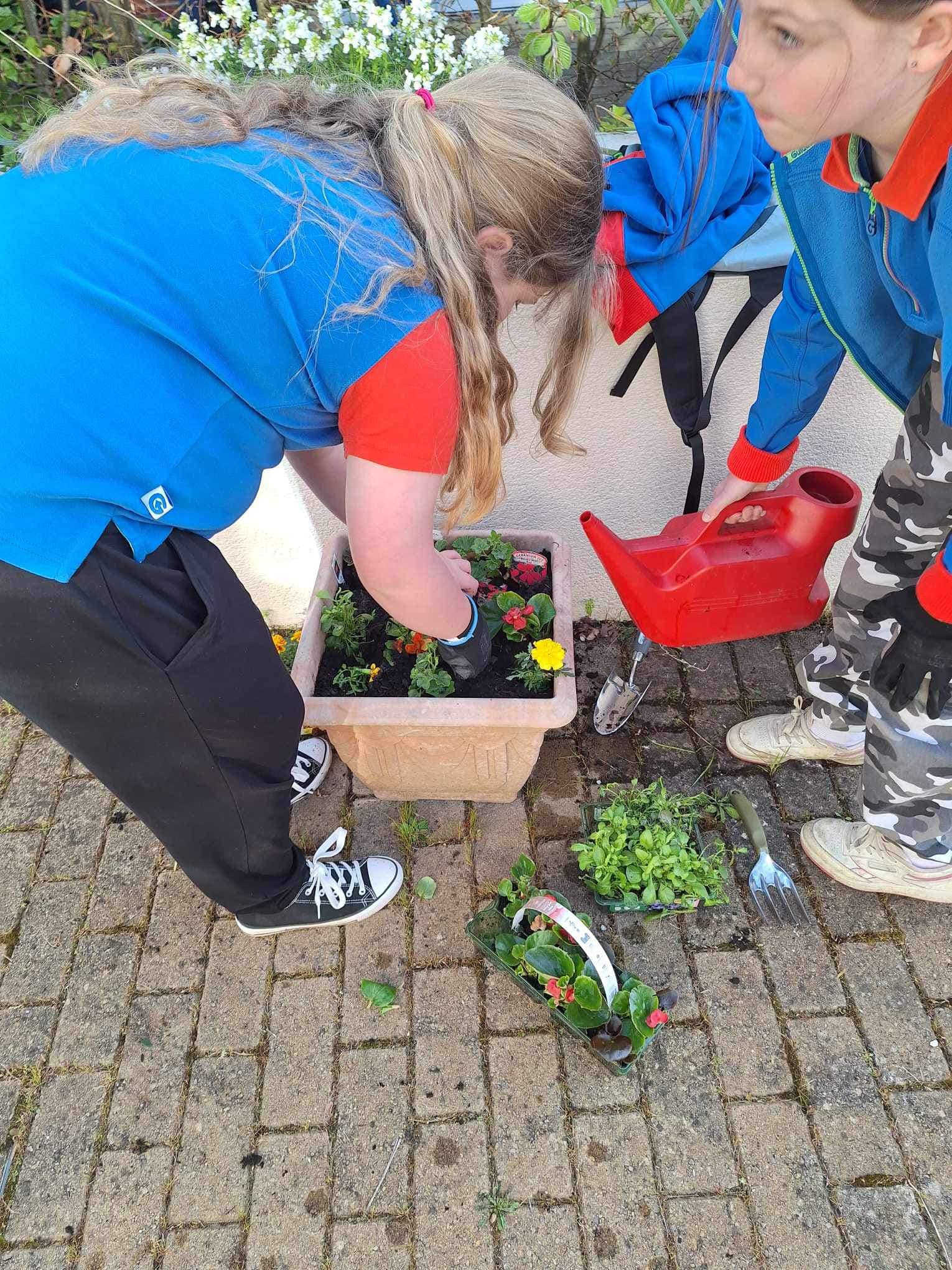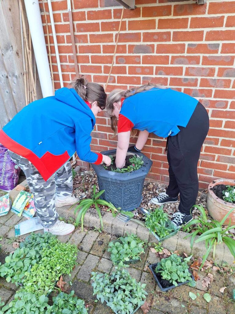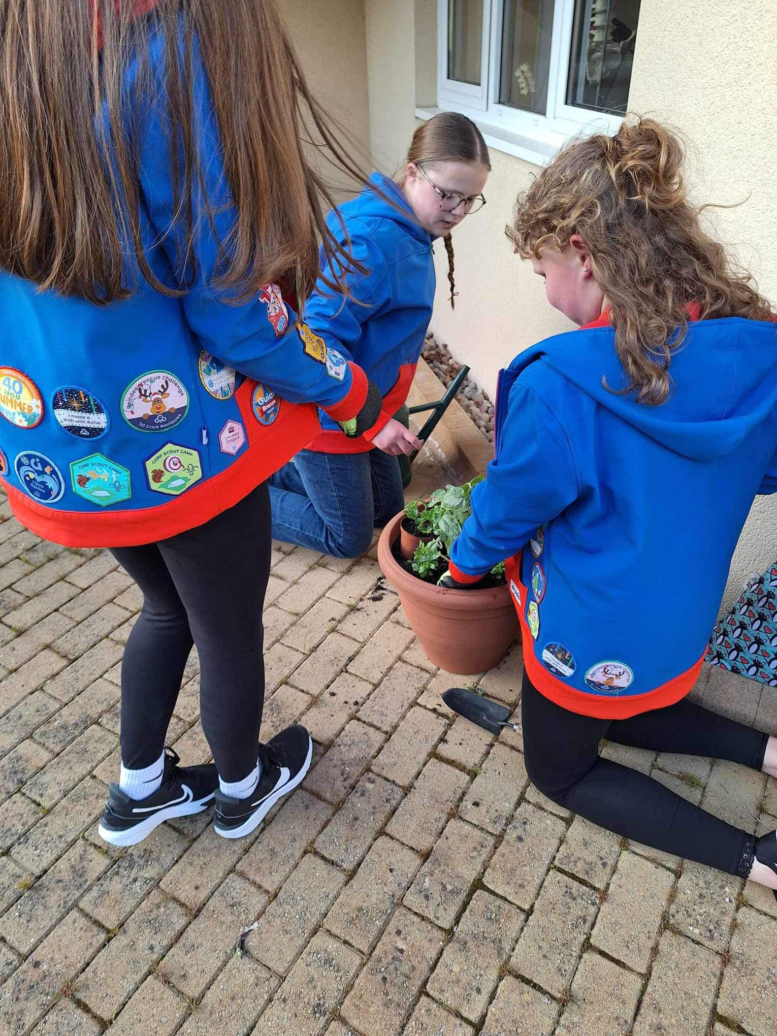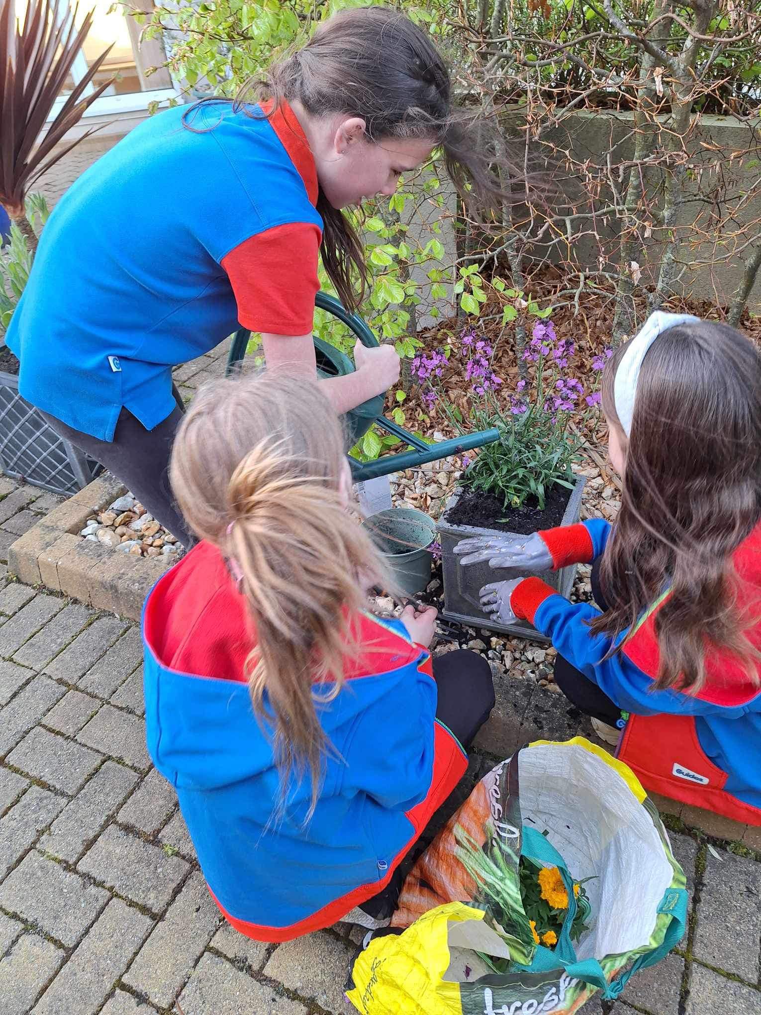 Guides from the 1st Carisbrooke (Princess Beatrice Own) Unit paid their annual visit to Mountbatten Hospice recently with the Guides undertaking planting up the tubs and troughs and a small flower bed with a selection of flowers and plants.