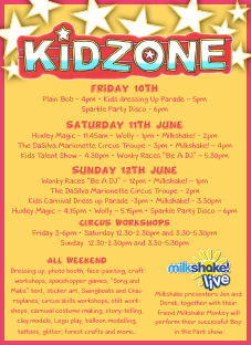 Kids Zone 2016 is going to be jam-packed with fun and entertainment for all ages, so go and party and show the kids a good time!