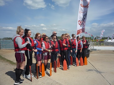 John Giddings is supporting The Cowes Ladies Football Team, a new football team for the Island, and was pleased to give then extra support for their Dragon Boat heat.