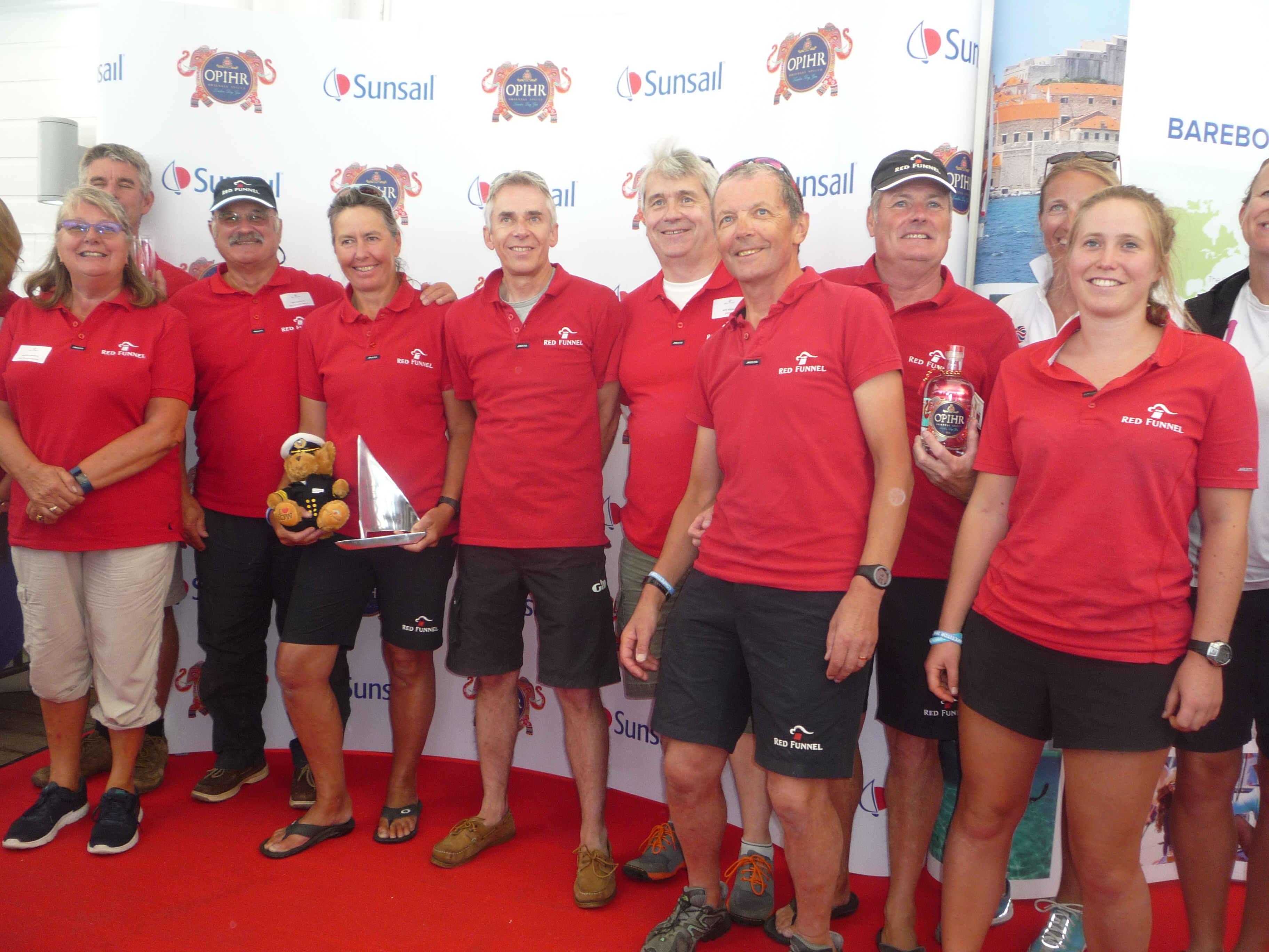 Ophir Gin is also an official supporter of Sunsail Charter Sailing. Their 30 strong fleet of Sunsail Match 40 yachts is chartered by various companies through the week and they have their own class in the regatta where boats compete for the Sunsail Challenge and the Lendy Finance Challenge. Overall winning boat for the Sunsail Challenge was ‘Tensing’ (a private equity company) which in the past represented Island based company Liz Earle. Second in the challenge was ‘Lendy’ and ‘Ophir’ third. Red Funnel 1 was placed 5th with some well-known Island residents in the crew during the week.
