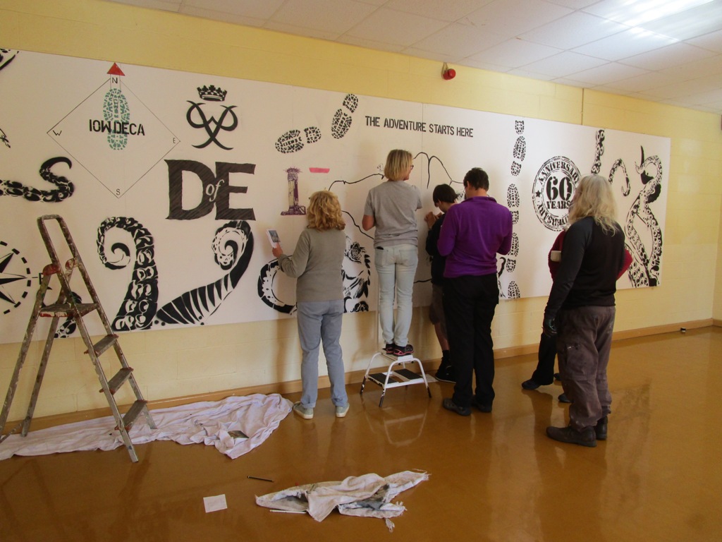 Participants in the Duke of Edinburgh’s Award, leaders from Newport Open Award Centre and West Wight Open Award Centre and some parents undertook the challenge of painting a large mural to commemorate the Diamond Jubilee of the Award recently.