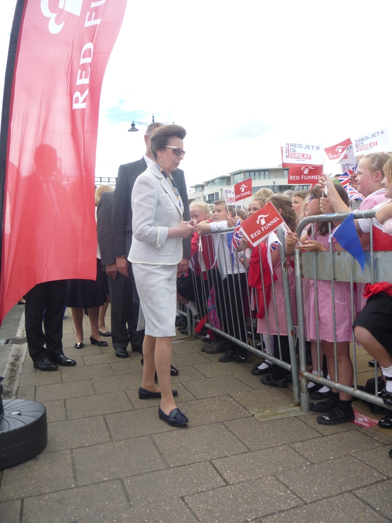 Making her way to Trinity Landing Princess Anne met assembled dignitaries including Andrew Turner MP, Cllr. Charles Chapman, Chairman IW Council, High Sheriff Robin Courage and Cllr. David Jones, Mayor of Cowes.