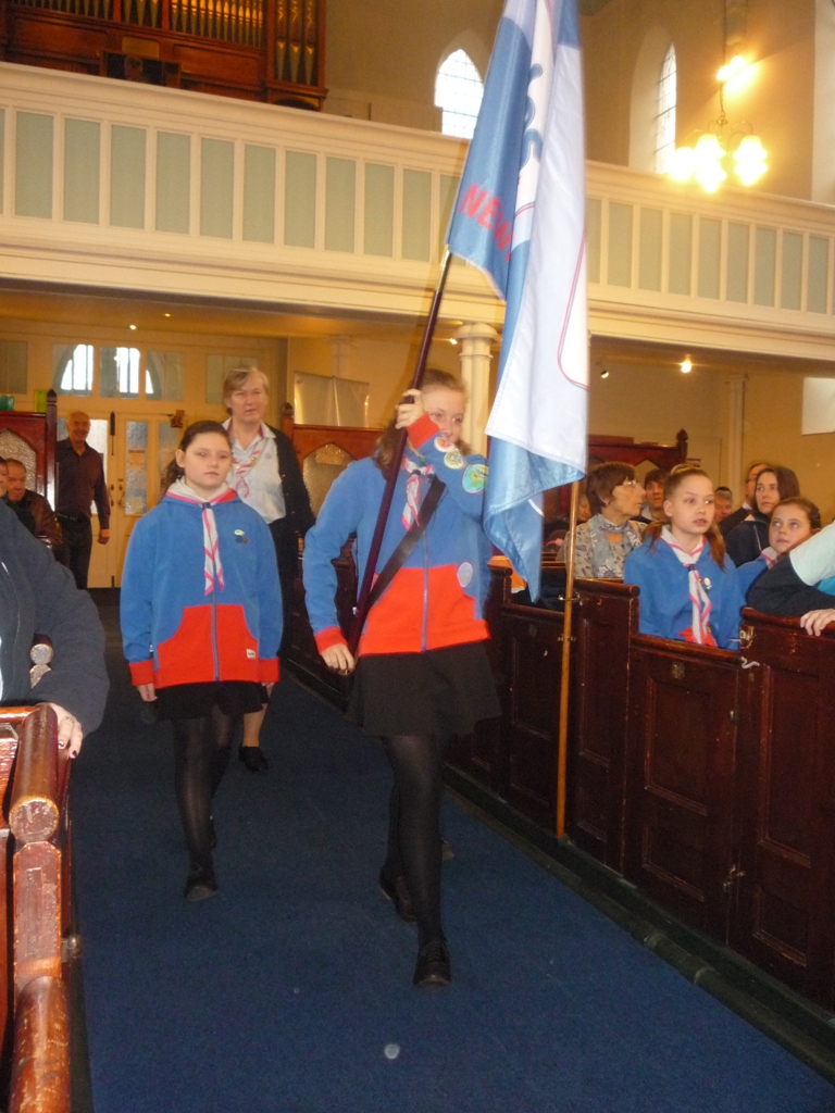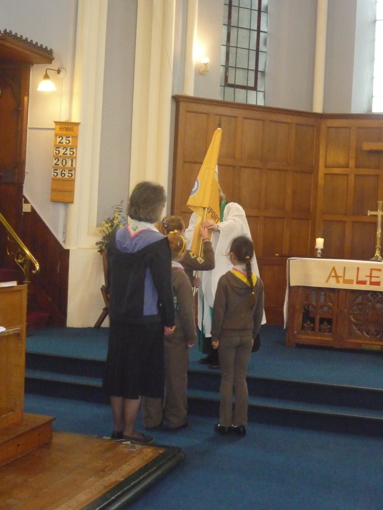 Brownies, Guides and leaders read poems and lessons and all females in the congregation who are Girlguiding members or had taken the Girlguiding Promise in the past were invited to renew their Girlguiding Promise.