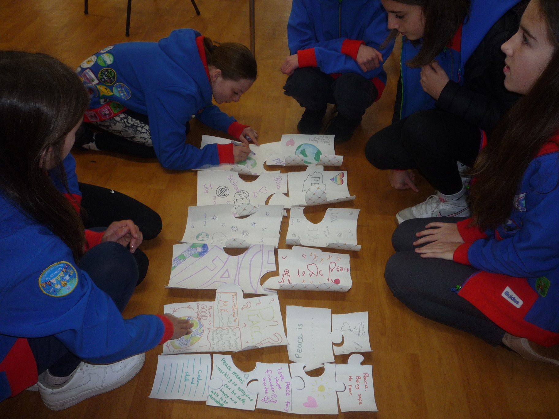 Carisbrooke Guides had a fun packed afternoon with games from around the globe as well as tastes of other cuisines. All the girls and leaders joined in making a very large jigsaw with each member writing or drawing their ideas on the theme of Peace, French crepes filled with fresh fruit gave them the taste of an unusual cuisine and games included camel racing.