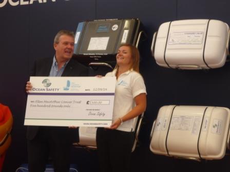 Ocean Safety organised one of the first events of the show when Charlie Mill from the company handed over a cheque for £500 to Clare Ross from The Ellen MacArthur Cancer Trust (EMCT). To enable the money to be raised Ocean Safety advise sailors to drop off their life rafts, when they need to be checked out, to the EMCT base in East Cowes and the company donates an amount to the charity each time this happens.