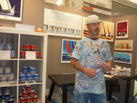 Following the successful exhibition of his work at AAM Cowes Week, artist Stephen Lee was on hand at the Boat Show to demonstrate his painting skills. Working in vibrant colours the paintings are mainly of marine topics but his study of beach huts is a must for those who need reminding of happy days on the beach.