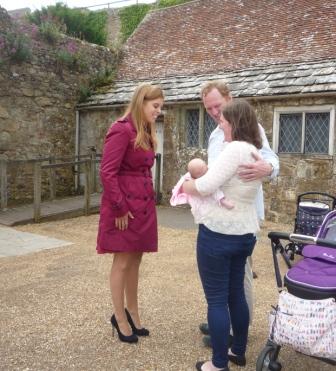 Following the chapel visit the vicar of Carisbrooke, who also has the Castle’s chapel within his Parish was outside with his wife and small baby. Princess Beatrice stopped to speak with the Rev. Marcus Bagg, wife Emily and baby Lydia as well as other onlookers.