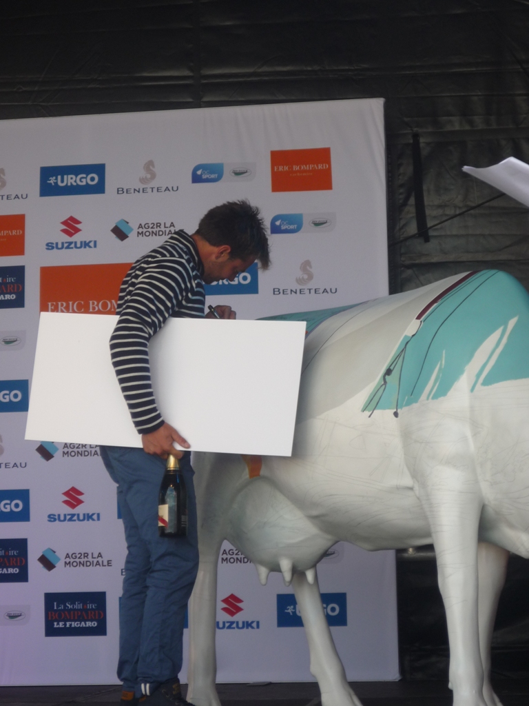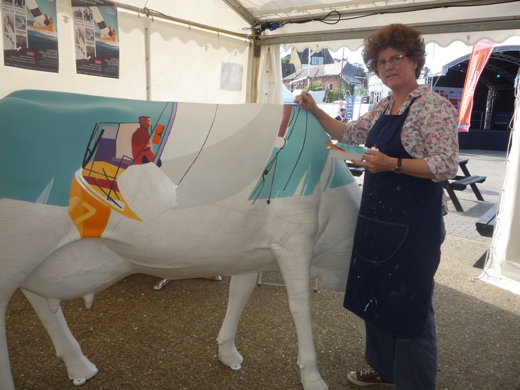 Other stands included one with local artist Rowena Wright who was busy painting this year’s La Solitaire Bompard Le Figaro logo onto one of the Tapnell Farm cows. Later all the race competitors signed their names over the body of the cow making another unique display for Tapnell.