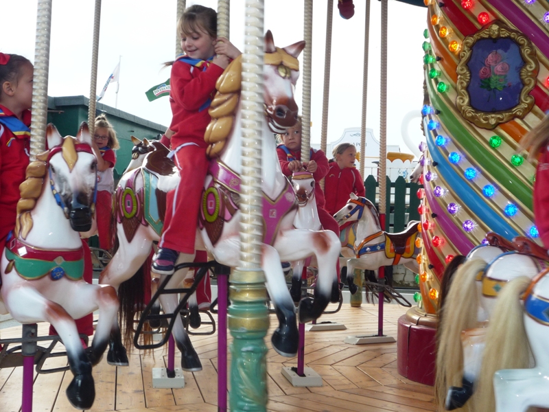 Next activity for the Rainbows was creating their own unique souvenir in the traditional Alum Bay Sand before all the units could choose to ride on the Needles Park rides. Popular choices were the Spinning Tea Cups, Carousel and Vintage Cars.