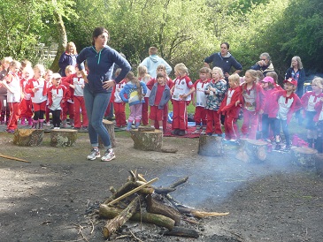 learning how to light a fire and toasting marshmallows on a real wood fire.