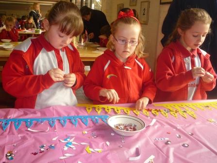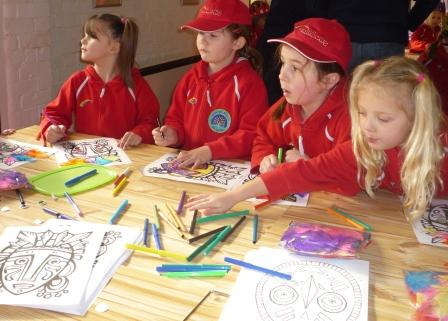Activities included making a lei,creating different shapes with origami, using chop sticks, making masks and crowns, decorating pictures with coloured sand and a flap the fish race. To remind the girls of UK traditions they all enjoyed a Somerset Apple drink.