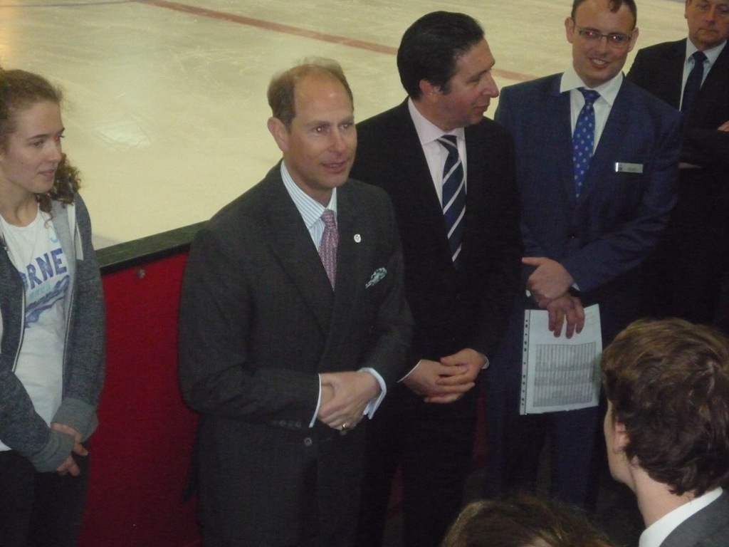 Prior to Prince Edward’s arrival at Ryde Arena heats had taken place to decide the finalists of races skated on the ice which had been undertaken by school teams. Later Prince Edward watched a display of synchronised skating by Wight Jewels before presenting the prizes to the winners of the races- Ryde Academy-and unveiled a commemorative plaque to mark the occasion of his visit.