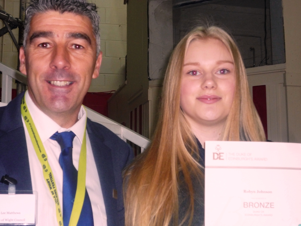 Amongst those who spoke with the Earl were Dale Godfrey who has recently taken part in The Diamond Challenge, Gold Award holder and long-time D of E group leader Suzanne Whitewood MBE and Robyn Johnson who has recently achieved her Bronze Award. Robyn from Sandown Bay Academy was presented with her certificate and Bronze Badge by Lee Matthews IW Council officer responsible for the D of E on the Island.