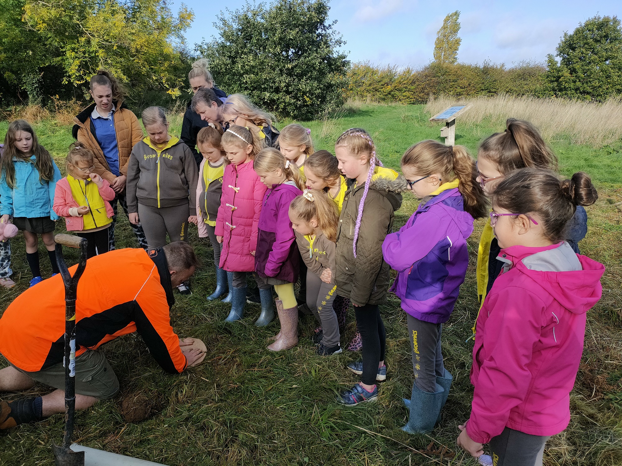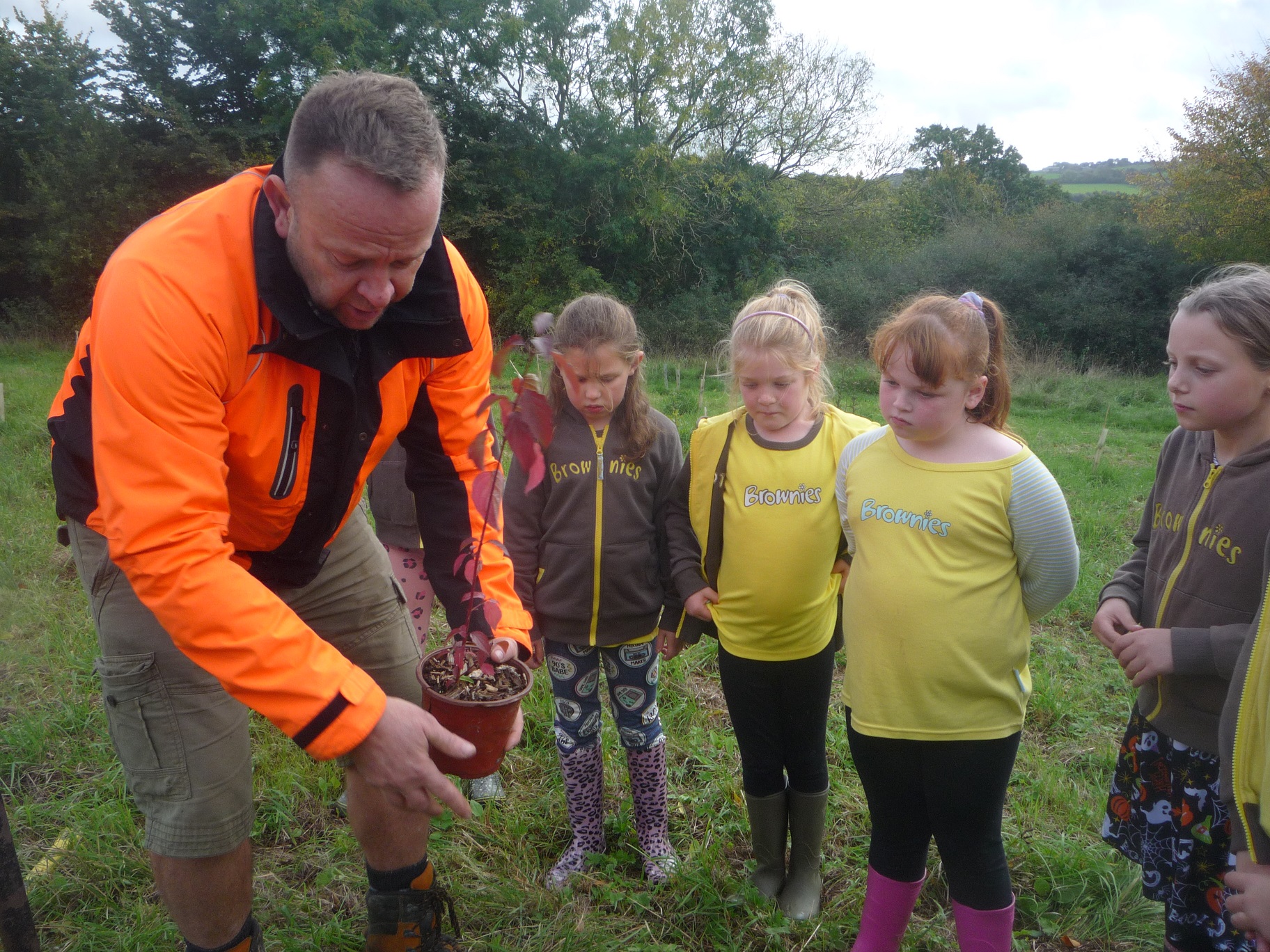 Helping the Brownies with their planting were Karl, senior Ranger from Natural Enterprise and Rachael Ardley. Karl and Rachael work together at Natural Enterprise/ Gift to Nature which is based at Shide.