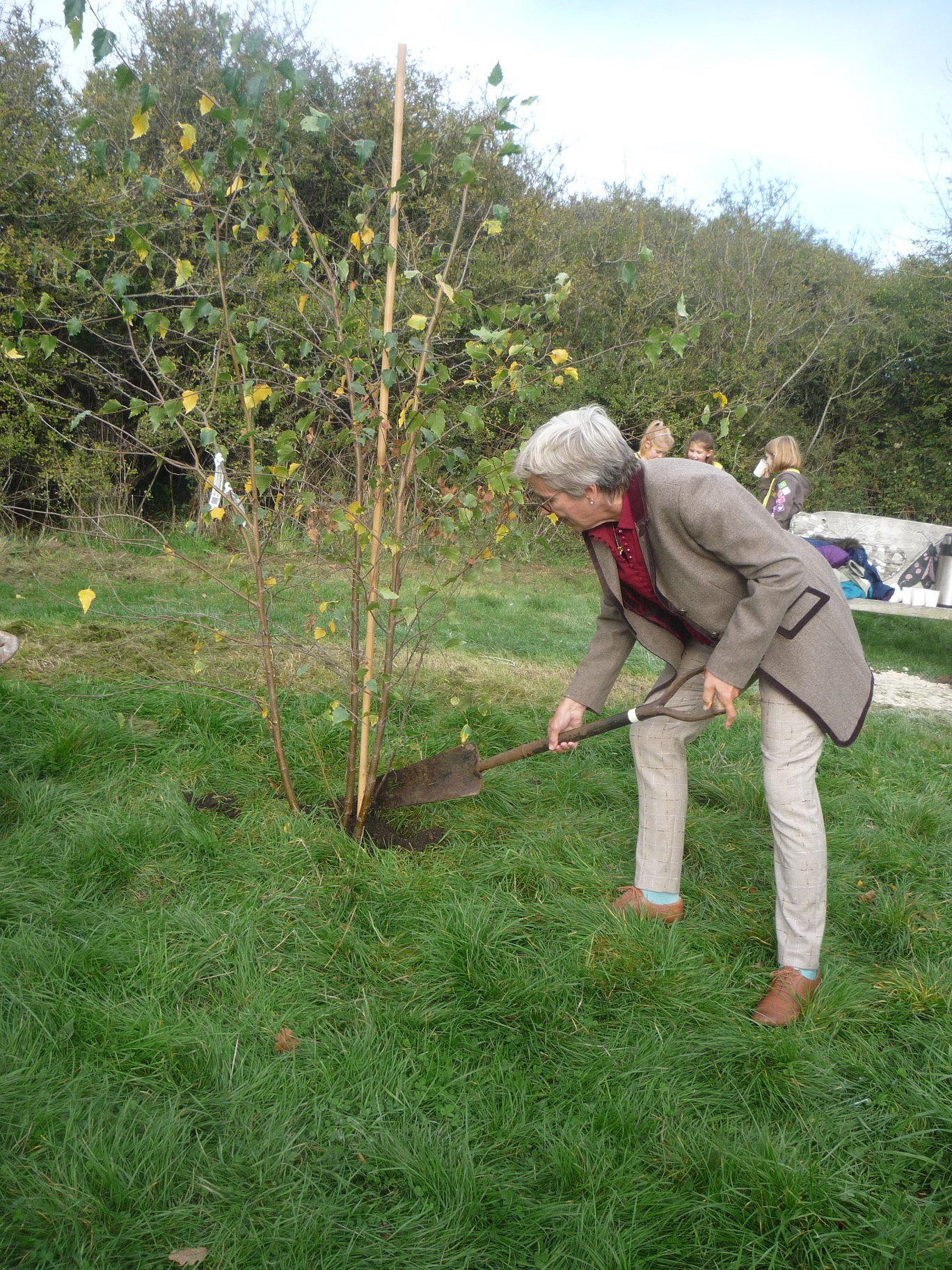 Susie Sheldon- IW Lord -Lieutenant planting Silver Birch from Jubilee Tree of Trees