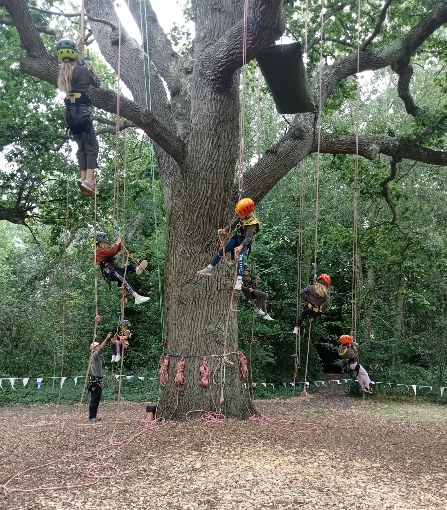 After instruction from the tree climbing experts even the most apprehensive Brownies were up, up and away in the branches.