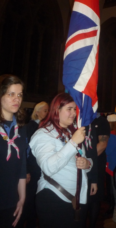 Unit flags were paraded by Rainbows, Brownies, Guides and Senior Section and to remember the 100 years of the Senior Section three members of the Trefoil Guild who had been Rangers carried the World Flag.