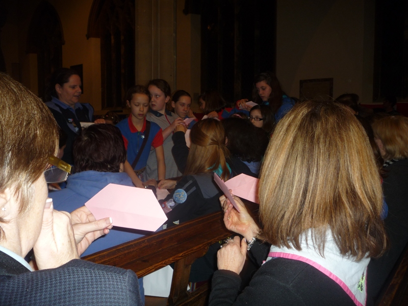 Other activities, planned by Marion O’Nions, included the lighting of a World Thinking Day Candle, making a human friendship chain around the inside of the church and making a paper heart.