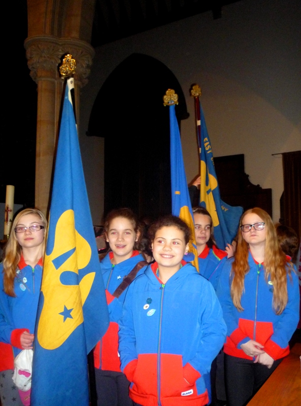 Island celebrations took place at All Saints Church, Ryde on the 22nd of February with Canon Graham Morris welcoming everyone to the church including; Island High Sheriff Ron Holland and Mrs. Susan Holland, Cllr. Charles Chapman, (Chairman IW Council), Sir Guy Acland, Mrs. Anne Twining (Patron) and Mr. S. Twining, and Girlguiding IW President Patricia Partridge. Rev. Janice O’Shaughnessy (Girlguiding IW Chaplain) led the service which saw all the girls wearing a hat from another Country to remind them of their 10 million Girlguiding and Girl Scout sisters around the World.